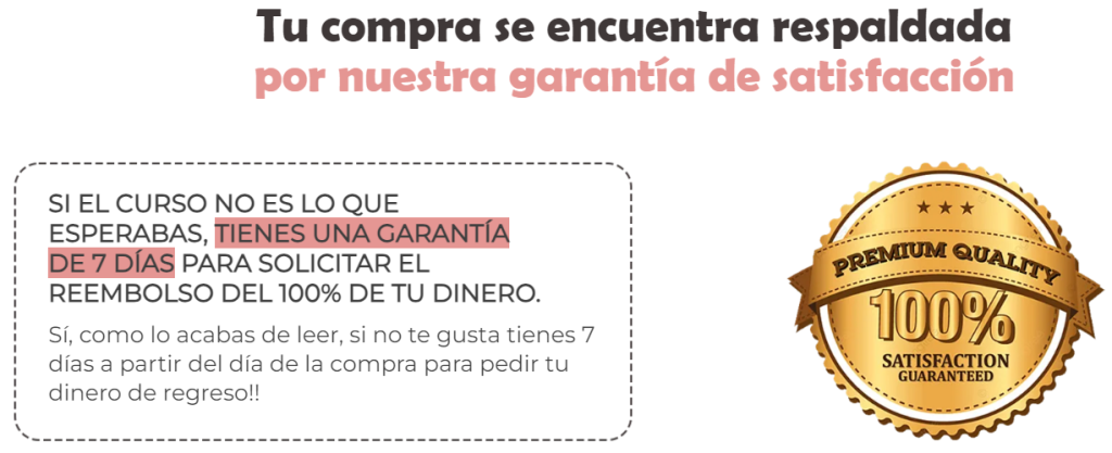 Comprendo que puedes dudar. por todo el riesgo que haya en internet Pero somos un equipo que te brinda garantía y la solución mas sencilla, rápida de elaborar Postres y Tortas saludables deliciosos, incluso si no tienes experiencia en la Repostería. Para que no tengas ninguna duda te brindamos 7 días de prueba si no cumplimos tus expectativas te devolvemos tu dinero.
